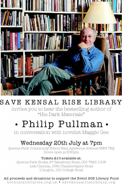 Philip Pullman will be speaking at an event to raise funds for the Libraries of Brent, North London, on Wednesday the 20th of July. He will be reading from The Good Man Jesus and the Scoundrel Christ, talking to novelist Maggie McGee and answering questions from the audience.